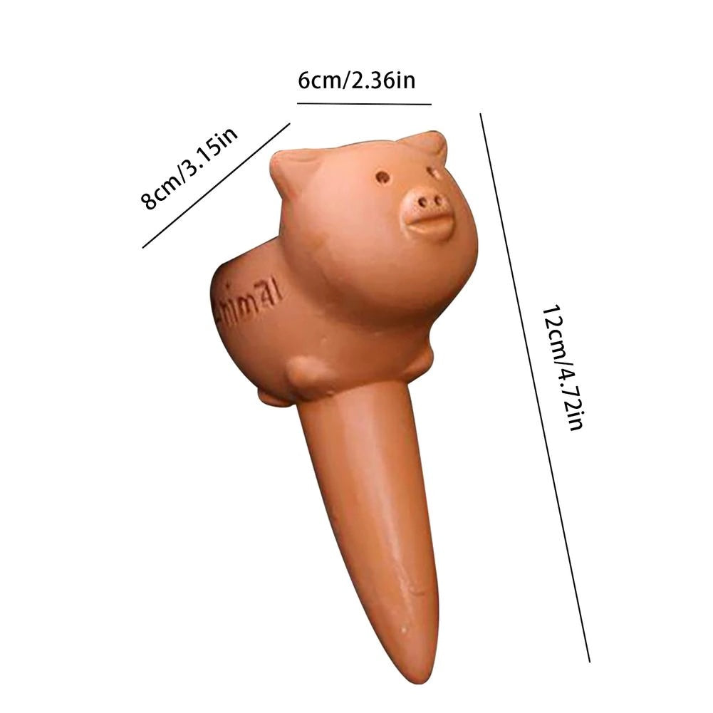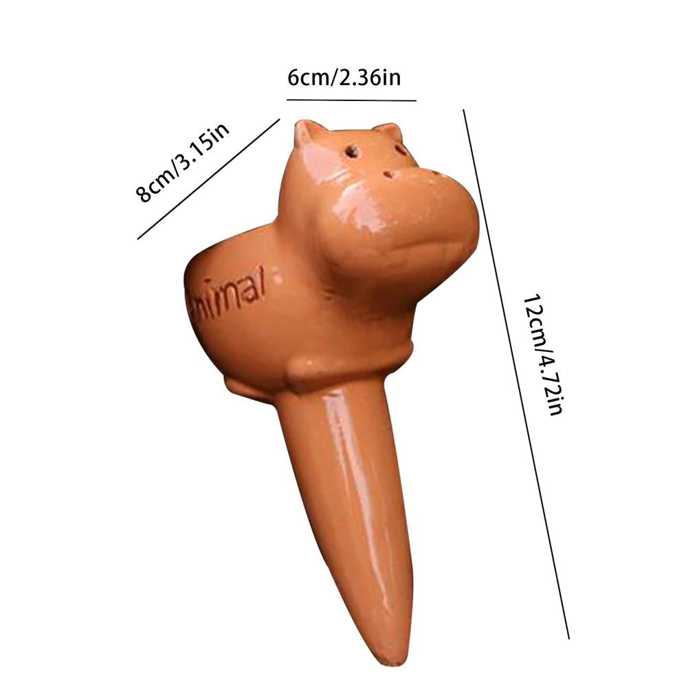 This Automatic Water Seepage Device is perfect for keeping your plants hydrated while you're away. Made from high-quality ceramic material, it is not fragile and has good permeability. It can be used indoors or outdoors, for indoor plants, garden plants, hanging plants, flowers, spices, herbs, potted plants, etc. It also makes a lovely decoration, with a choice of five cute animal designs. The penetration time is about 3 days when filled with water. Size: 8126cm.